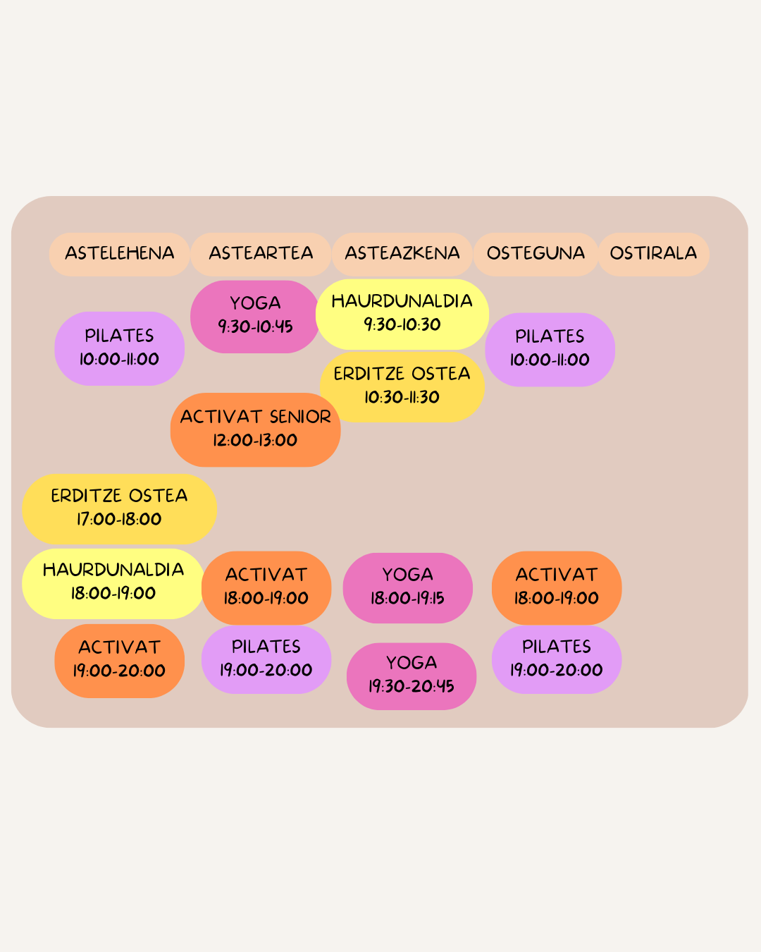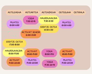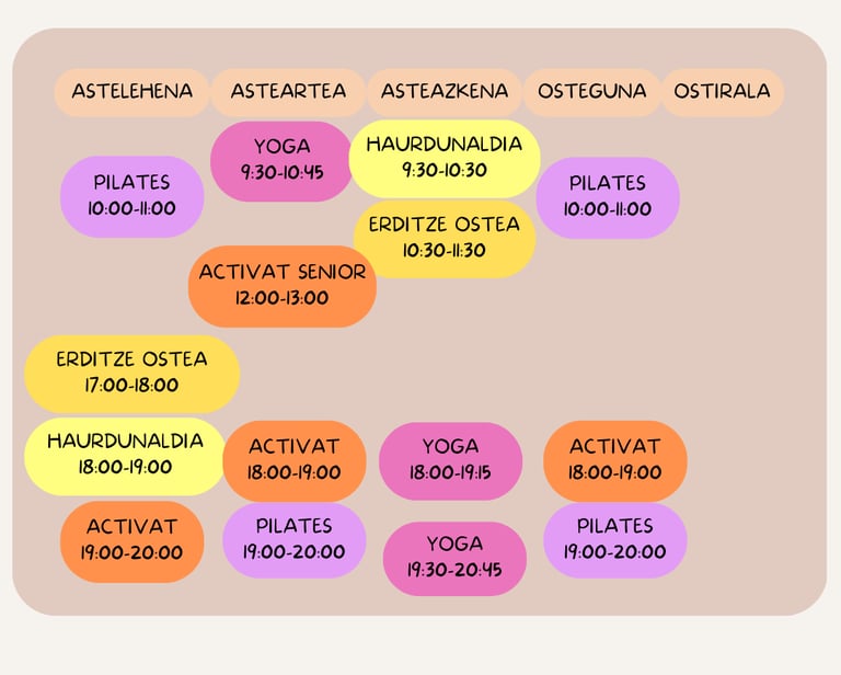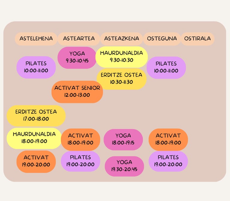 Hauek dira gaur egun ditugun klaseak, zerbaitek interesa pizten badizu baino ordutegiek ez badizute kointziditzen idatzi lasai eta saiatuko gara konponbide bat bilatzen !