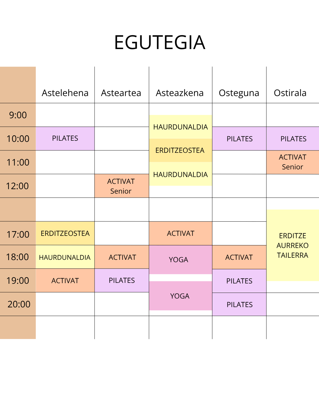ASTEAZKENA: 8:00 - 21:00