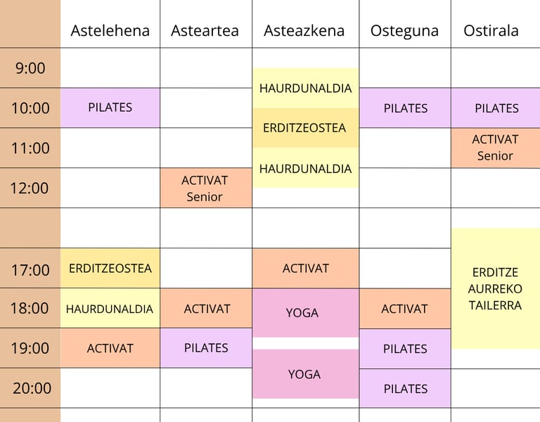 Gure klaseak arlo bakoitzeko profesionalek ematen dituzte, kalitatezko esperientzia bermatuz. Gainera, giro eroso eta atsegina eskaintzen dugu, pertsona oro ongi etorria izango dena.