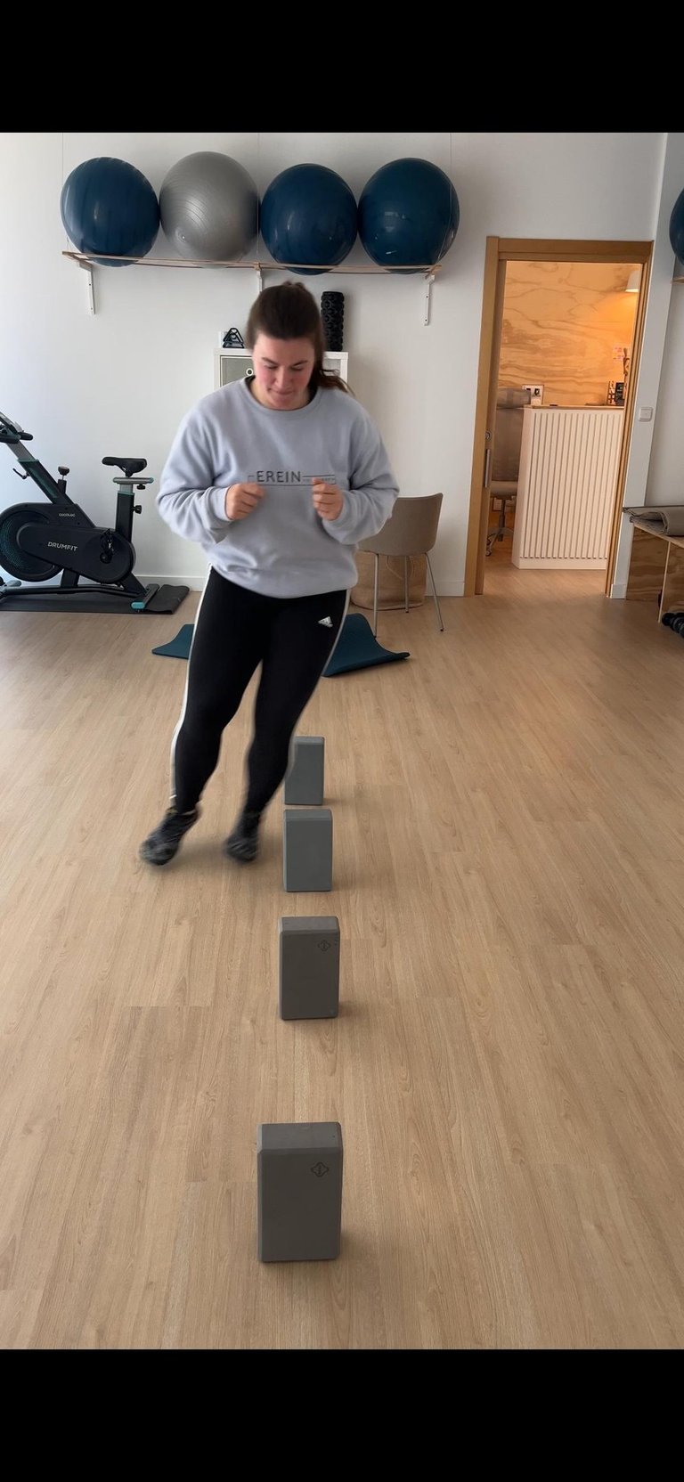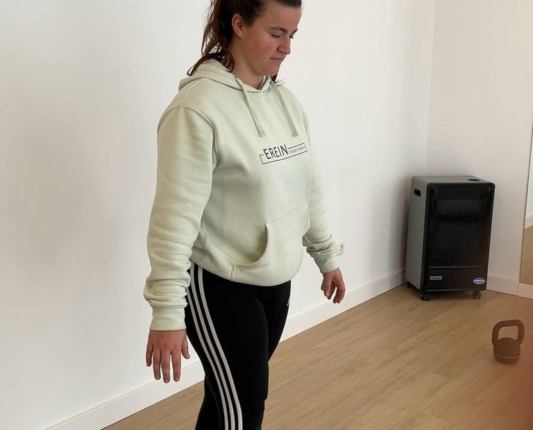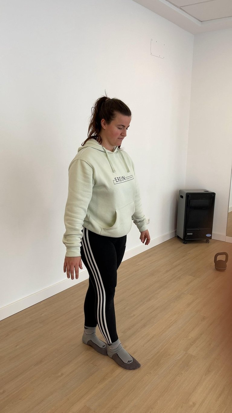 Trabajo en apoyo monopodal, para la integración sistema vestibular y somatosensorial.