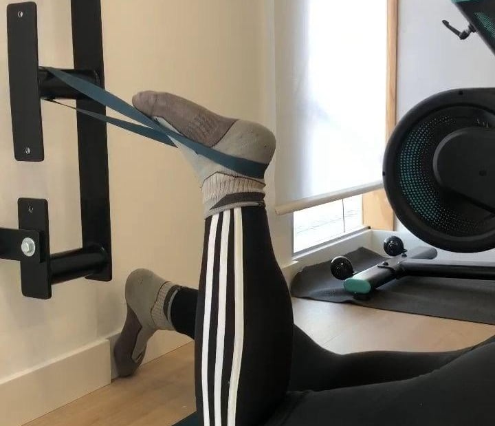 Ejercicios isométricos para reforzar rangos de movimiento y mejorar déficits de fuerza cuádriceps, isquiotibiales y glúteo.