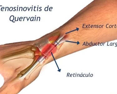 Cuando esta vaina se inflama o se engrosa, los tendones (que pasan por un canal estrecho junto al hueso del radio) tienen menos espacio para deslizarse y "rozarán" más al moverse, provocando dolor, rigidez o chasquidos al mover el pulgar.
