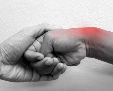 - Dolor localizado en el lado externo (radial) de la muñeca, junto al pulgar, que empeora con levantar al bebé, hacer pinza con el pulgar, girar la muñeca o movimientos repetidos.