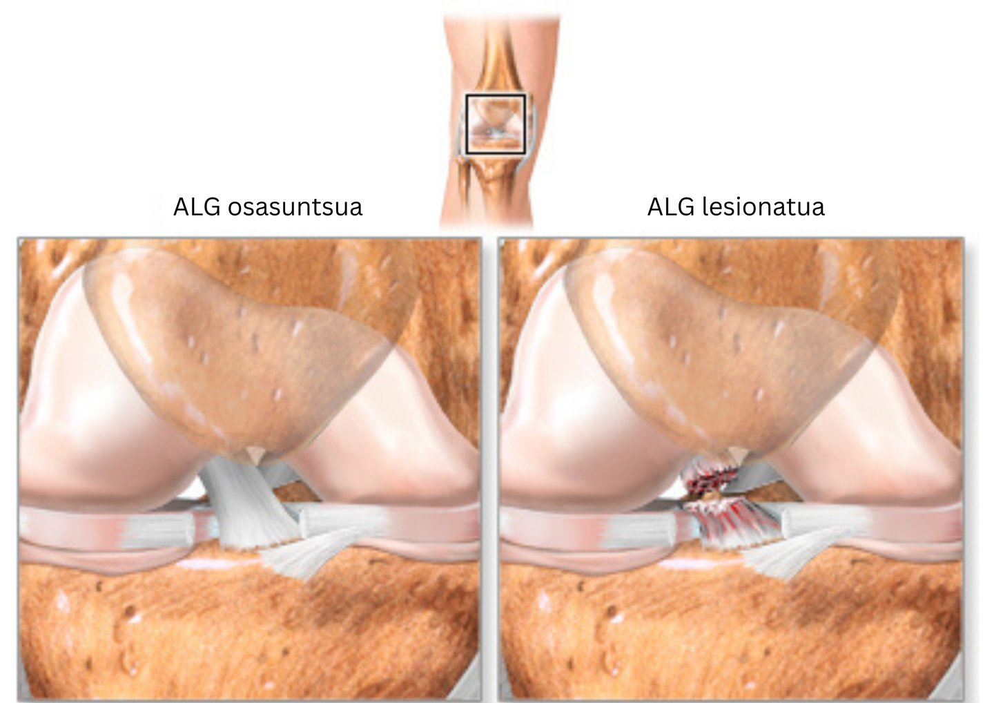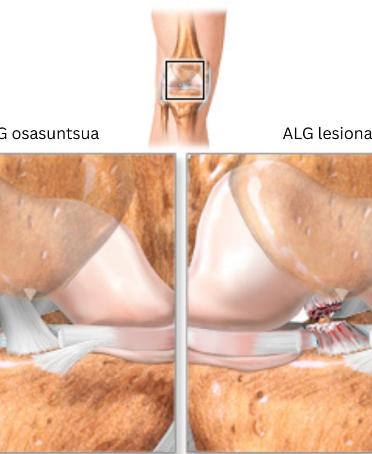 ALGaren lesioa distentsio arin batetik haustura oso edo abultsio bateraino joan daiteke. Fisioterapiak funtsezko zeregina du lesio horien prebentzioan, tratamenduan eta errekuperazioan, belaunaren funtzioa berreskuratzen eta berriz lesionatzeko arriskua murrizten laguntzen baitu.