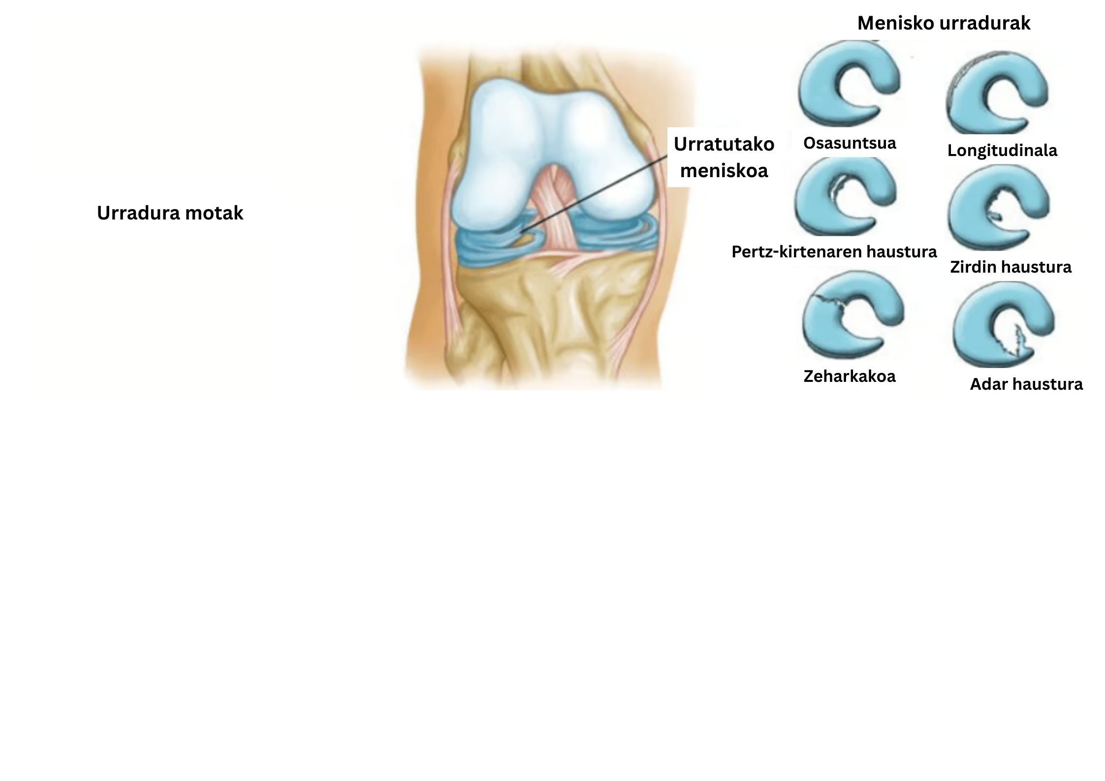 Lotailu-sistema: Lotailuetako lesioak, hala nola bihurdurak edo mikrourradurak, menisko lesioekin nahas daitezke.